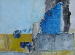 2012compositie in blauw en geel, gemaakt op papier. Ingelijst met passepartout. De afmeting is met passepartout 65x80.